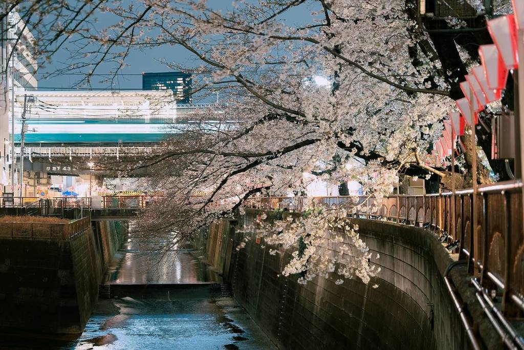 The 40th Nakameguro Cherry Blossom Festival begins on the day Tokyo declares cherry blossoms in bloom. Meguro River illuminations run from the start of blooming until March 31, from 5:00 PM to 8:00 PM. Bonbori lanterns light up for 15 days from the start of blooming, also from 5:00 PM to 8:00 PM. Numerous food stalls and food trucks typically operate. Expect crowds on weekends, so visiting on a weekday is recommended.